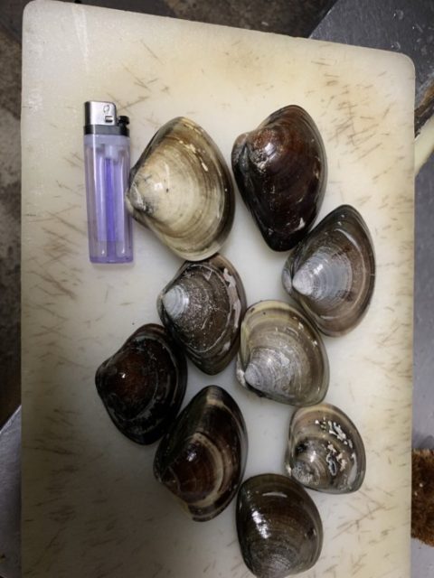 今年初めて津御殿場海岸に潮干狩りに行きました。大きな蛤が採れました^_^